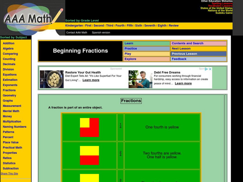 Students learn about partitioning shapes and fractions. The resource consists of notes and practice problems.