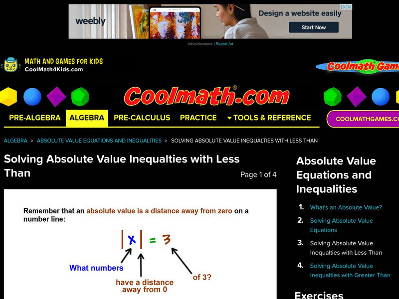Coolmath: Solving Absolute Value Inequalties With Less Than