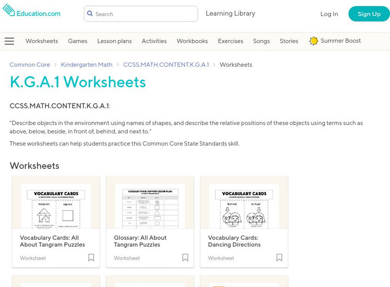 [Free Registration/Login Required] These worksheets help students practice describing objects in the environment using names of shapes and describing the relative positions of these objects using terms such as above, below, beside, in...