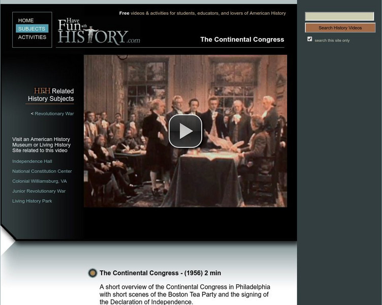 This is a very short overview of the formation and activities of the Continental Congress in Philadelphia. It also contains short scenes of the Boston Tea Party and the signing of the Declaration of Independence.