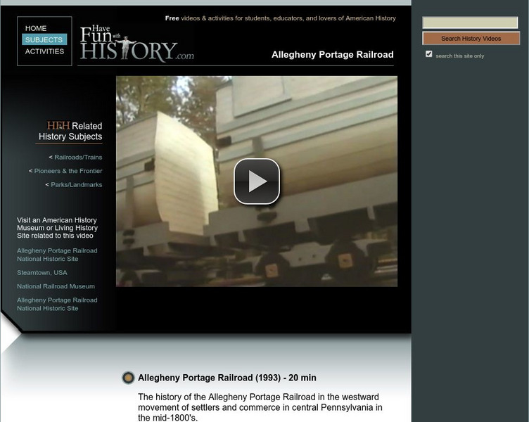 The history of the Allegheny Portage Railroad in the westward movement of settlers and commerce in central Pennsylvania in the mid-1800's.