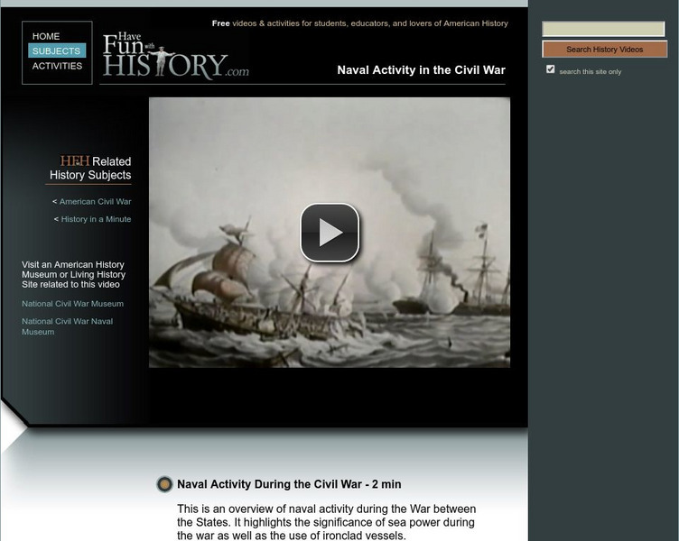 This is an overview of naval activity during the War between the States. It highlights the signifcance of sea power during the war as well as the use of ironclad vessels. [2:00]