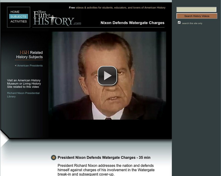 President Richard Nixon addresses the nation and defends himself against charges of his involvement in the Watergate break-in and subsequent coverup. [35:00]