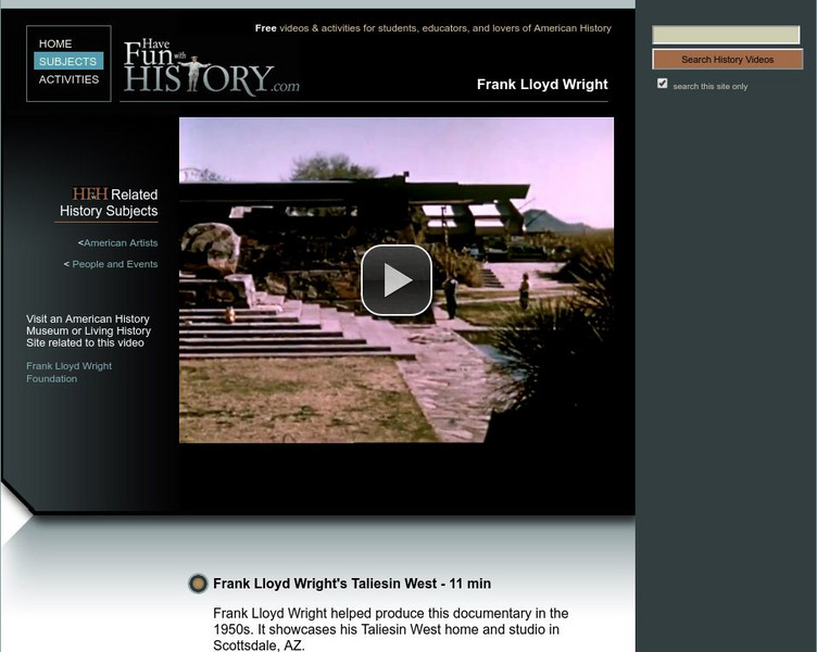 Frank Lloyd Wright helped produce this documentary in the 1950s. It showcases his Taliesin West home and studio in Scottsdale, AZ.