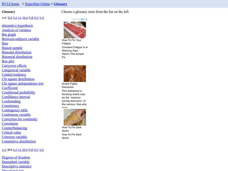 Hyper Stat Online Statistics Textbook: Statistics Vocabulary Glossary