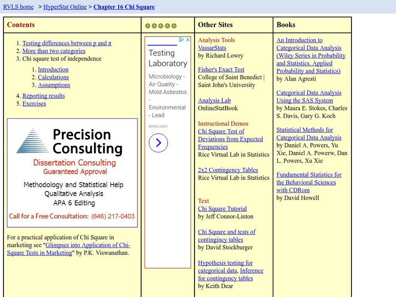 Using an example, the site walks the user through the steps needed to compute the Chi-Square Test of Independence. Links are provided along the way for relevant materials.