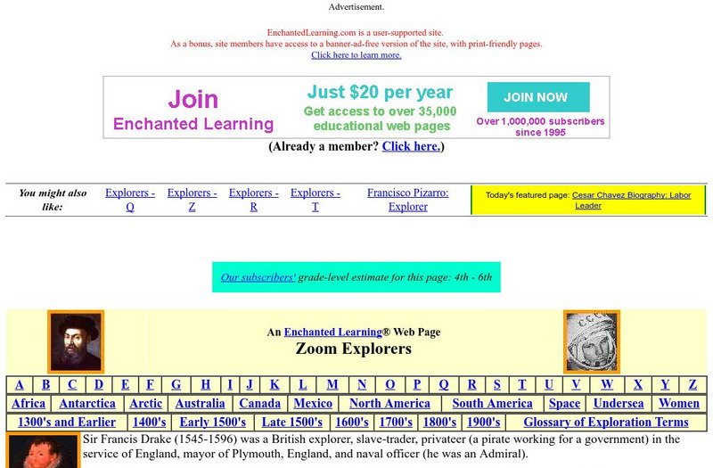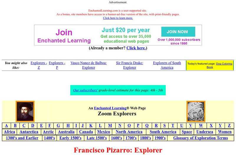 This is a comprehensive guide to all the people who explored Central and North America. They are alphabetically listed with brief biographies. Some entries have links for further information or activities.