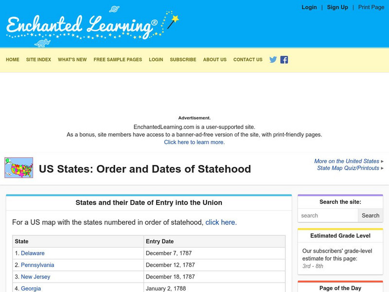 View this chart that organizes states by the dates of their statehood. Click on the individual state to see additional information such as state trivia, state flags, state symbols, famous people from that state, and printable activities.