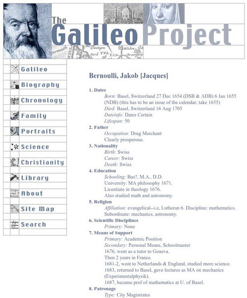 Galileo Project: Jakob (Jacques) Bernoulli