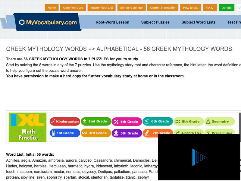 My vocabulary.com: Greek Mythology Words: Alphabetical 56 Greek Mythology Words