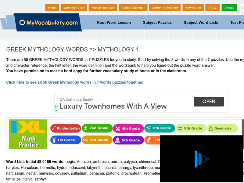My vocabulary.com: Greek Mythology: All 7 Word Puzzles