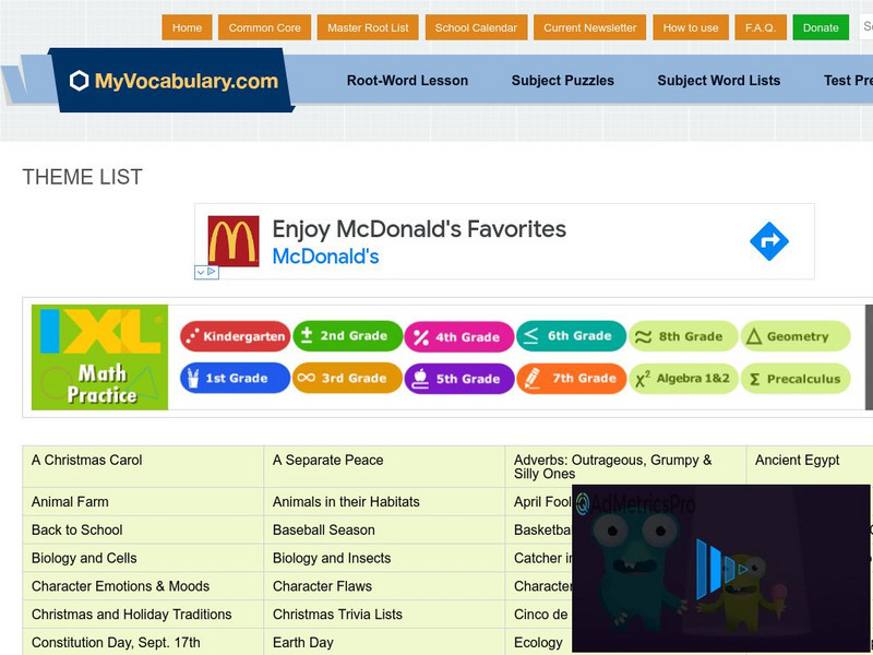 This is an alphabetical themes list of all of the puzzles available at MyVocabulary.com.