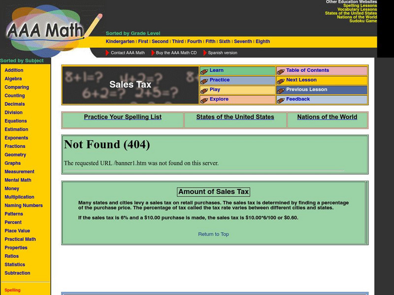 Practice finding the sales tax with this interactive AAA Math lesson. You may submit your answer to see if you are correct.