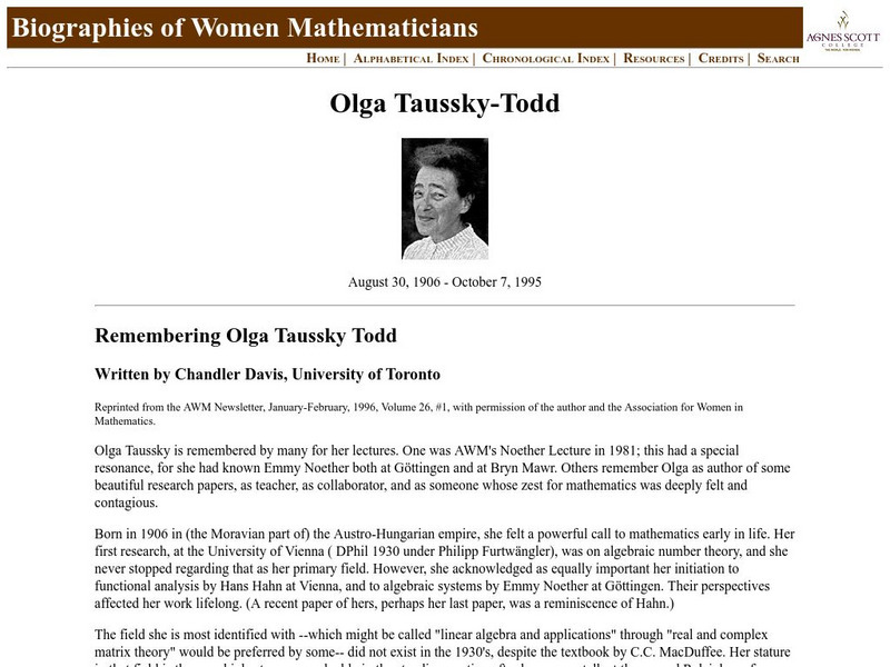 Agnes Scott College: Olga Taussky Todd (1906 1995 Ce)