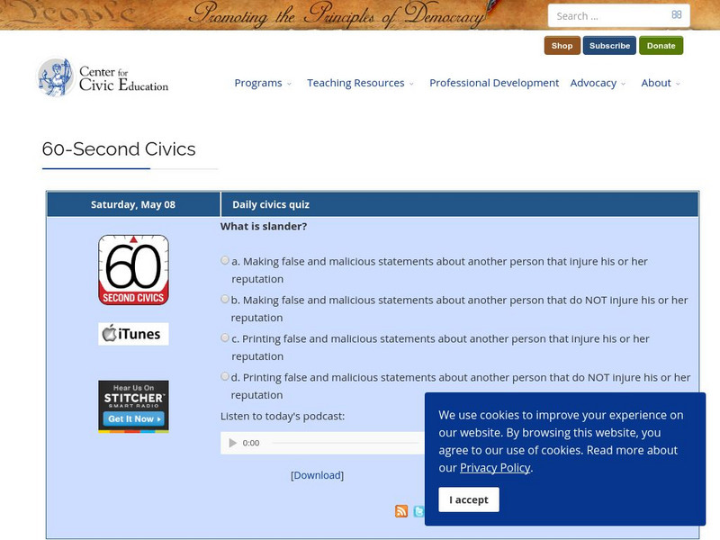 60-Second Civics is a daily podcast that provides a quick and convenient way for listeners to learn about our nation's government, the Constitution, and our history. The podcast explores themes related to civics and government, the...
