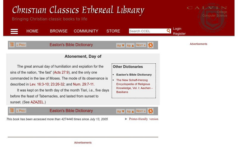 Ccel: Easton's Bible Dictionary: Day of Atonement