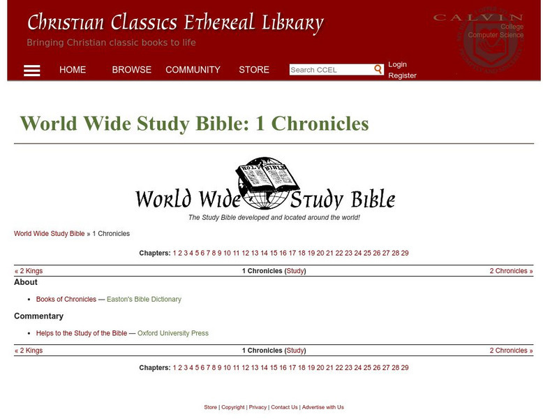 Jackpot! This site provides links to many different Internet sites about 1 Chronicles. Simply click on the site title and you can read more detailed information about the book.