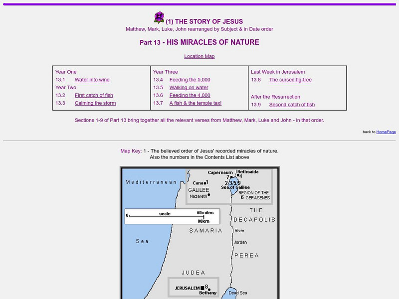 This Christian Classics site tells the Biblical accounts of Jesus' miracles of natural elements.