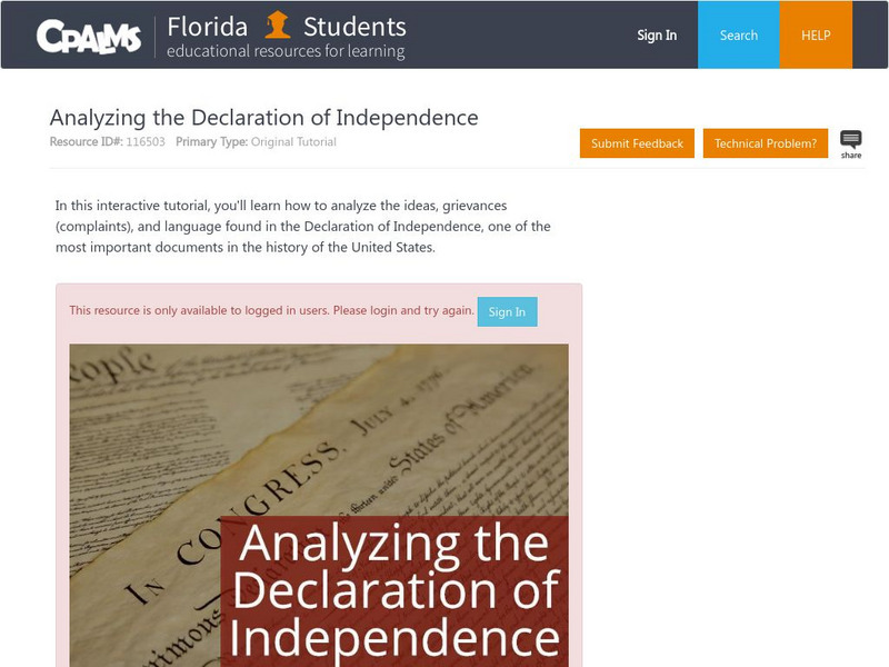 Florida State University Cpalms: Florida Students: Analyzing the Declaration of Independence