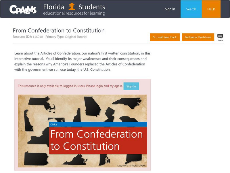 Florida State University Cpalms: Florida Students: From Confederation to Constitution