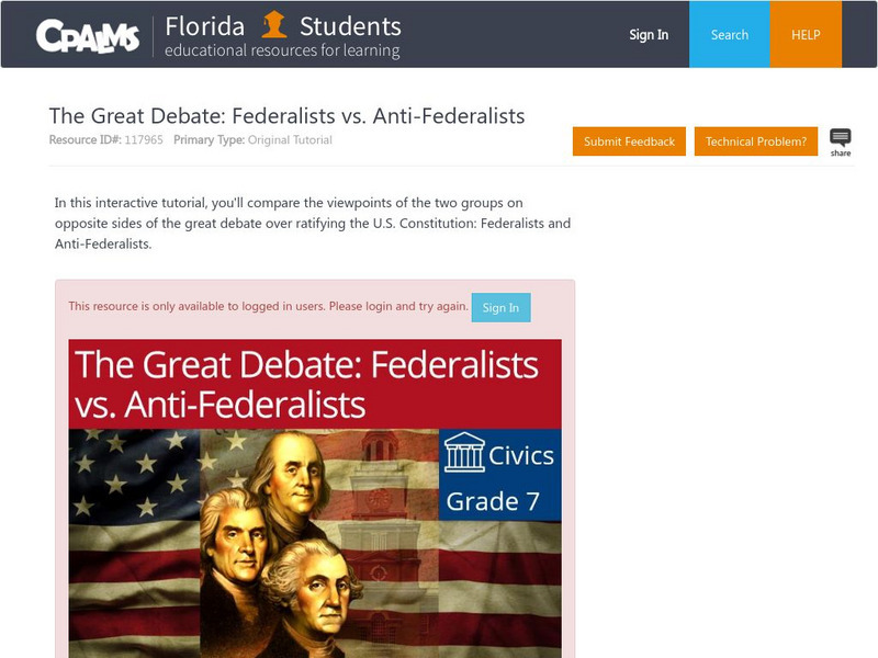 Florida State University Cpalms: Florida Students: Great Debate: Federalists vs. Anti Federalists