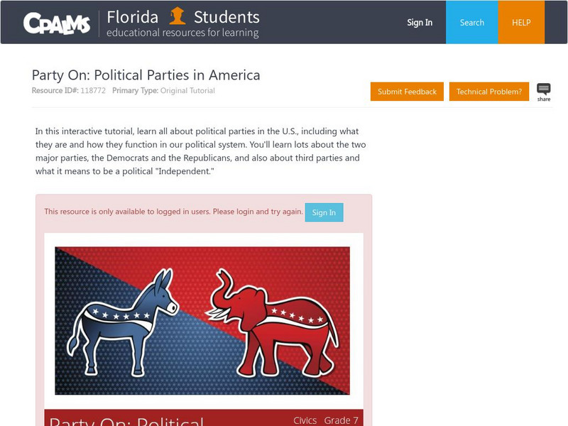 Florida State University Cpalms: Florida Students: Party On: Political Parties in America