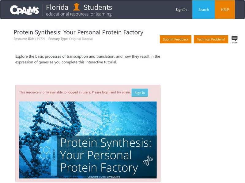 Florida State University Cpalms: Florida Students: Protein Synthesis: Your Personal Protein Factory