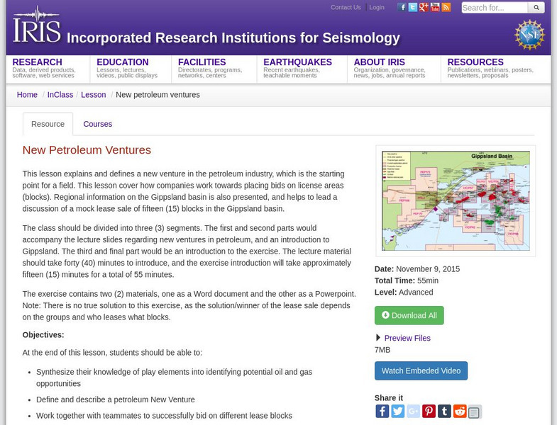 This lesson explains and defines how companies work towards placing bids on license areas (blocks). Students learn regional information on the Gippsland basin and participate in a discussion of a mock lease sale of fifteen (15) blocks in...