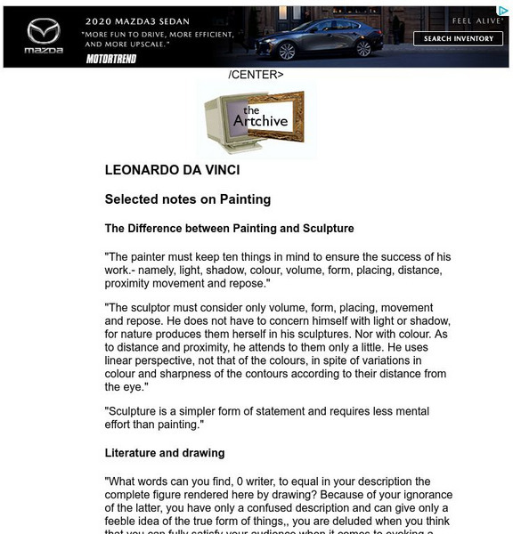 The Artchive: Leonardo Da Vinci Selected Notes on Painting