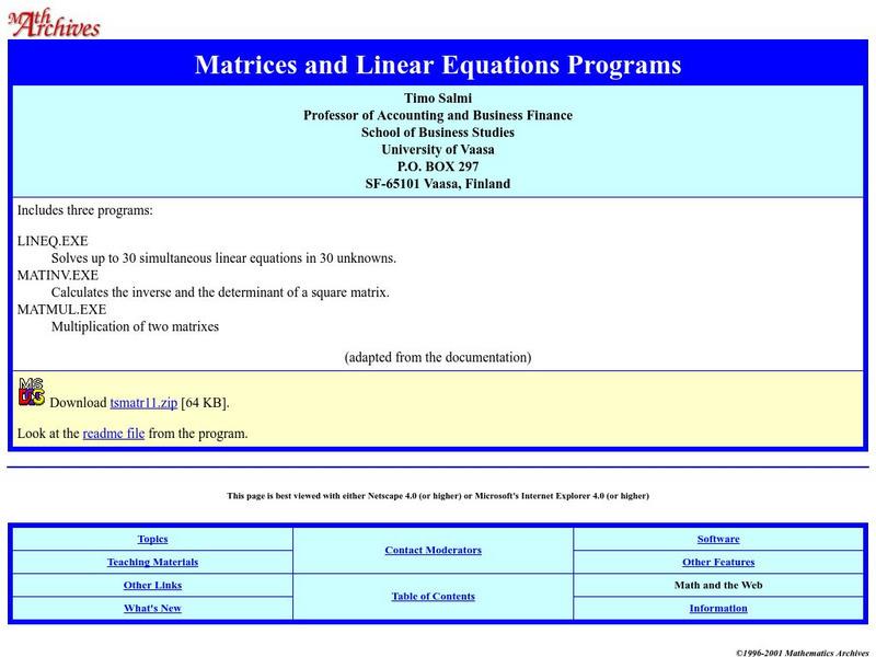 Math Archives: Linear Equation Programs