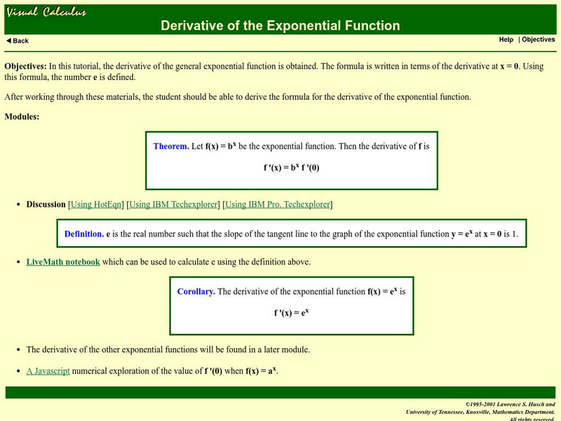 This site explains how the derivative of an exponential function is found.
