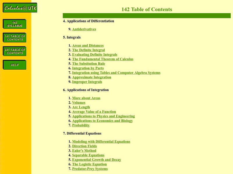 Math Archives: Calculus at the University of Tennessee Knoxville: 142 Table of Contents