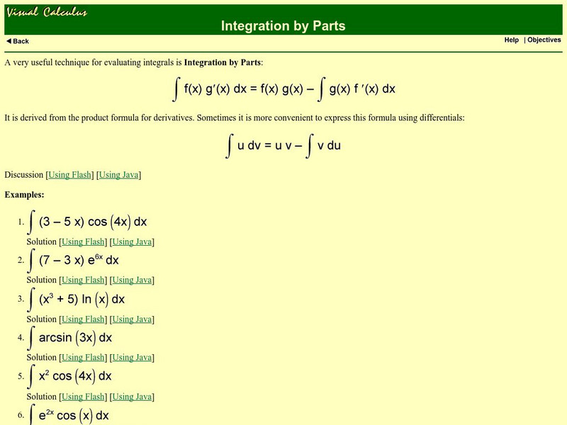 Excellent site explaining how and why the Integration by Parts works. Go through the formula step-by-step.