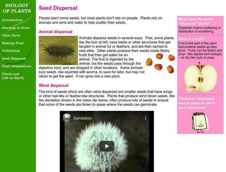 Learn about methods of seed dispersal. Includes videos, photos, and lesson plans.