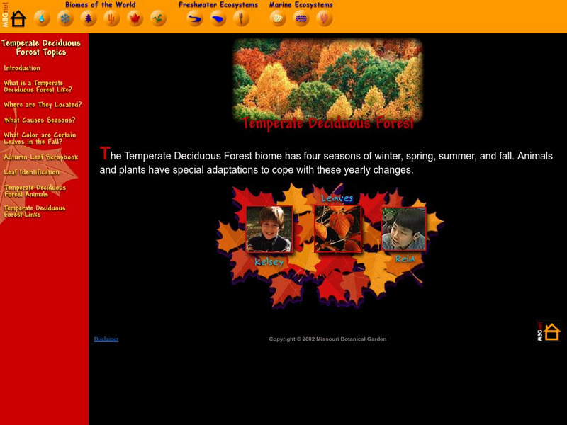 At this site from the Evergreen Project of the Missouri Botanical Garden, you can discover what the temperate deciduous forest is like, where it is located, and much more. There are links to other temperate forest sites also.
