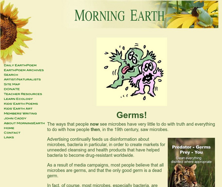 Scholars explore the science topic of germs. The tutorial consists of definitions, examples, and pictures about germ theory.