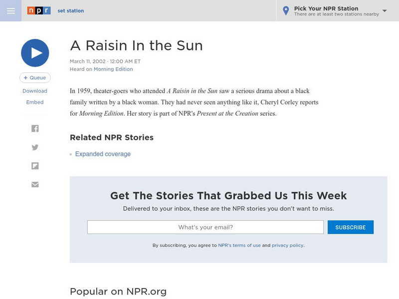Npr: A Raisin in the Sun by Lorraine Hansberry