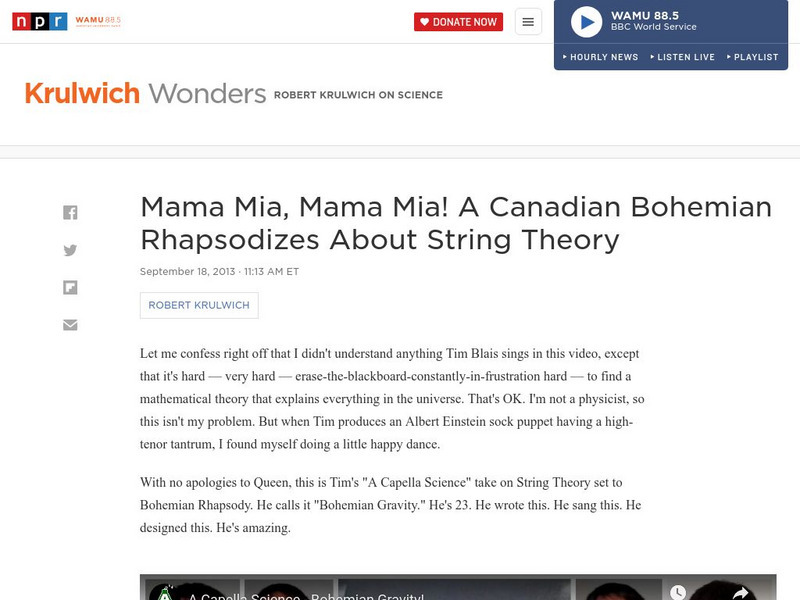 Npr: Krulwich Wonders: A Canadian Bohemian Rhapsodizes About String Theory