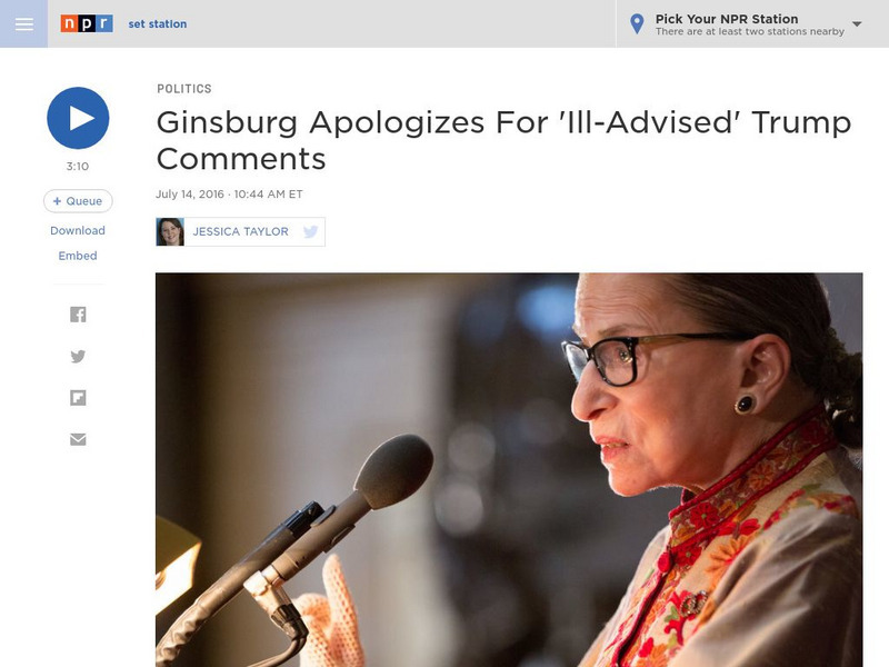 Npr: Week of June 18th 2016: Ginsburg Apologizes for Trump Comments