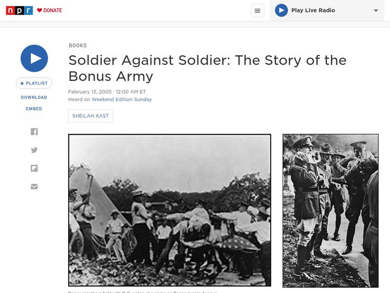 Listen to an NPR interview with author Paul Dickson, whose book, The Bonus Army: An American Epic, recounts the demands of World War I veterans and the violence against them at their encampment in Washington, D.C. There is also a short...