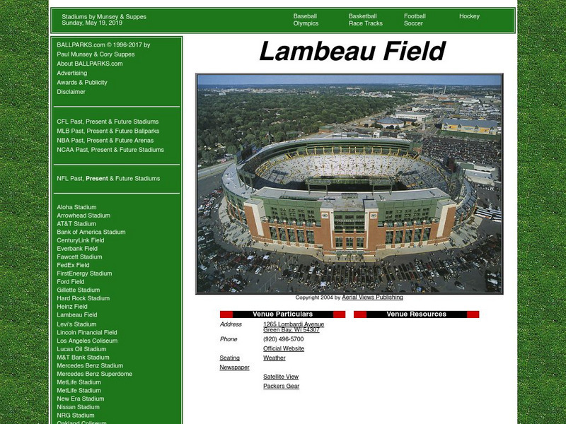 Identify all the information you want to know about Lambeau Field, home of the Green Bay Packers. Includes interesting facts and details about the facility and team, history of the venue, and news.