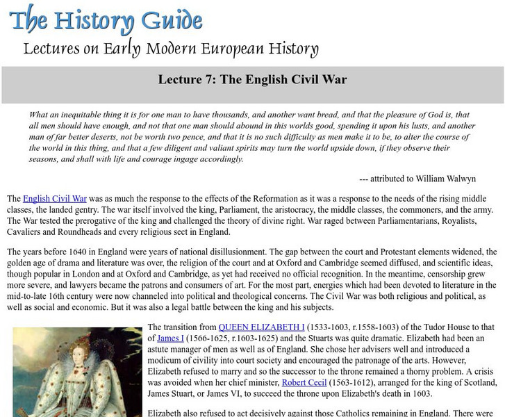 Explore the English Civil war with this site. Learn about the events that led up to the war, events that occurred during the war, and events that happened after the war. Also included is a biography of Oliver Cromwell who was a member of...