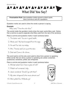 Punctuating dialogue properly is a skill that your young pupils will use for years to come. Allow individuals the chance to practice adding commas and quotation marks to sentences that are lacking punctuation. The activity here...