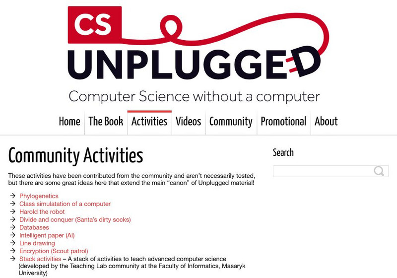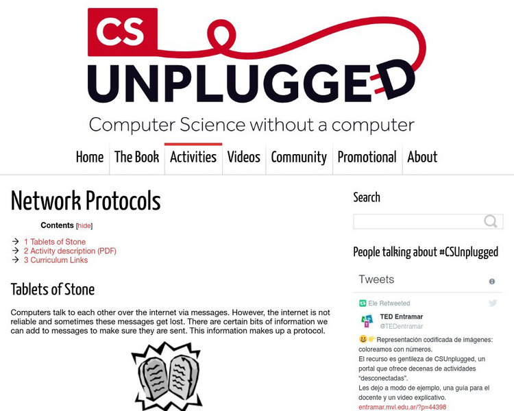 A collection of free learning activities that teach computer science through games and puzzles that use cards, string, crayons and lots of running around. The activities introduce students to computational thinking through concepts such...