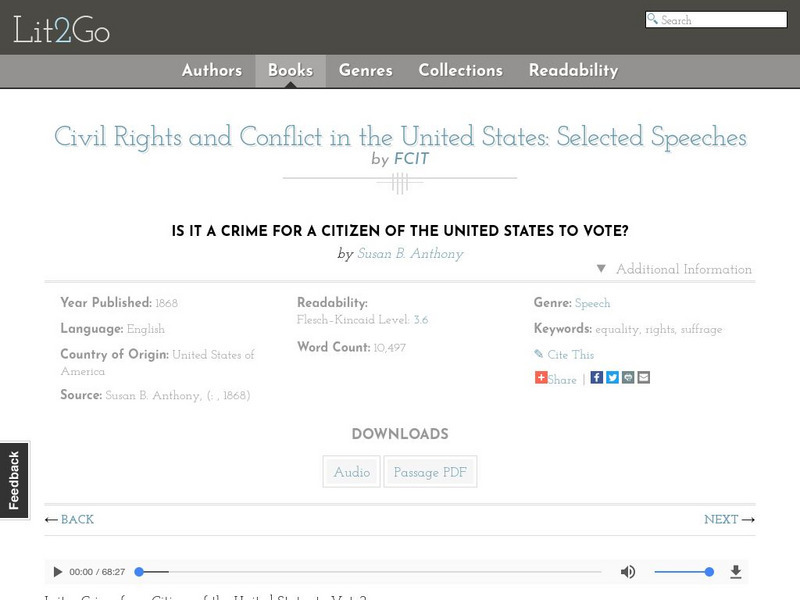 Educational Technology Clearinghouse: Lit2 Go: Susan B. Anthony