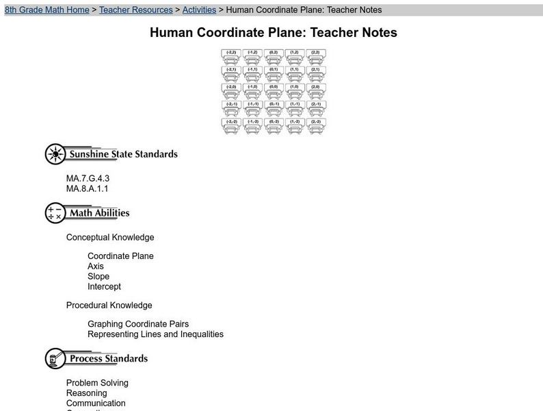 Young scholars participate as a class in this activity using their desks as points on the coordinate plane. The teacher leads them in the activity, increasing their understanding of the characteristics of the coordinate plane.
