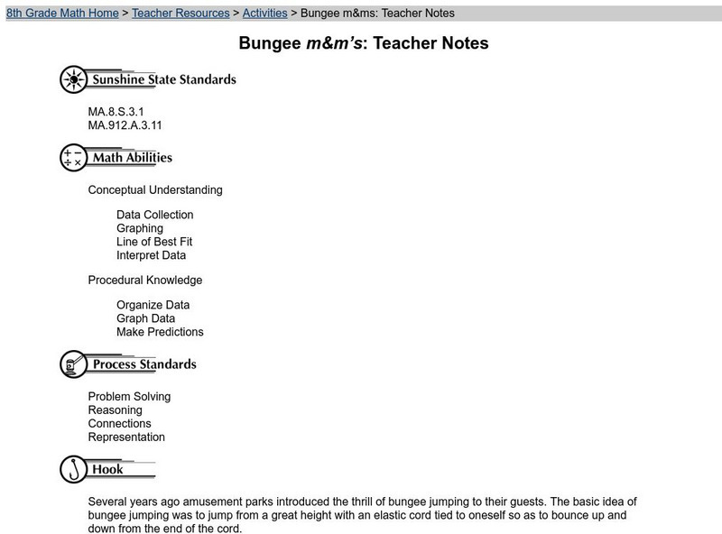 Students will learn how to draw a line of best fit for a set of data using m&m's and a "Bungee."