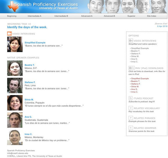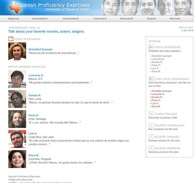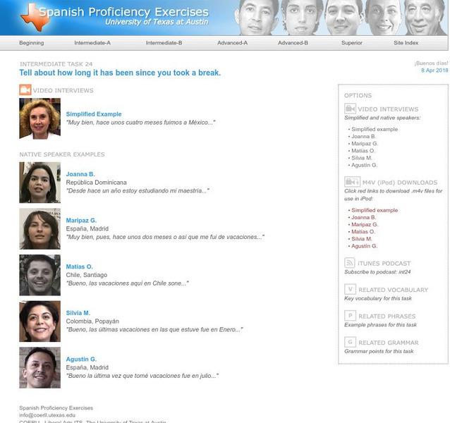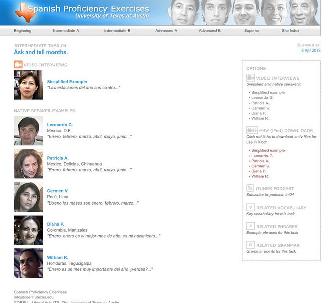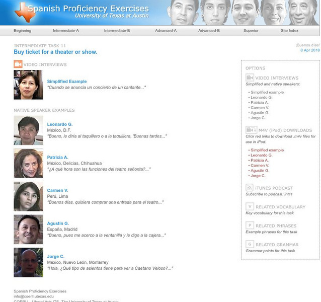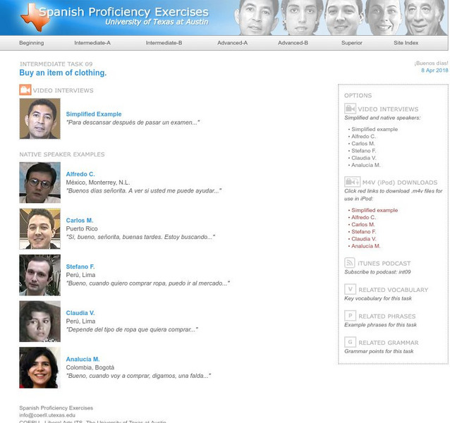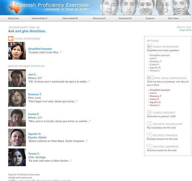 Video clips of native Spanish speakers provide examples for students who are taking Spanish. The videos feature Spanish speachers asking for directions and giving directions.