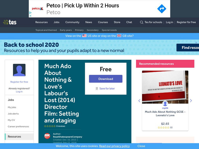 Tes: Much Ado About Nothing & Love's Labour's Lost: Setting & Staging