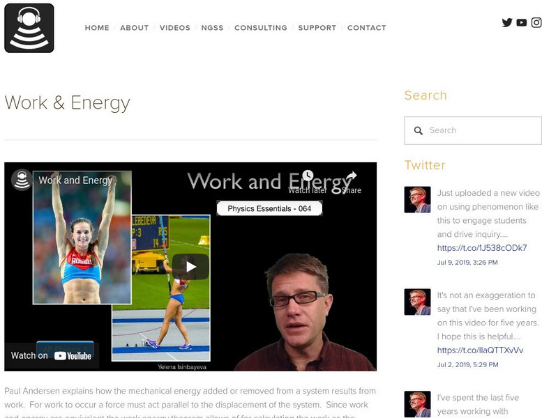 In the following video Paul Andersen explains how the mechanical energy added or removed from a system results from work. For work to occur a force must act parallel to the displacement of the system. Since work and energy are equivalent...